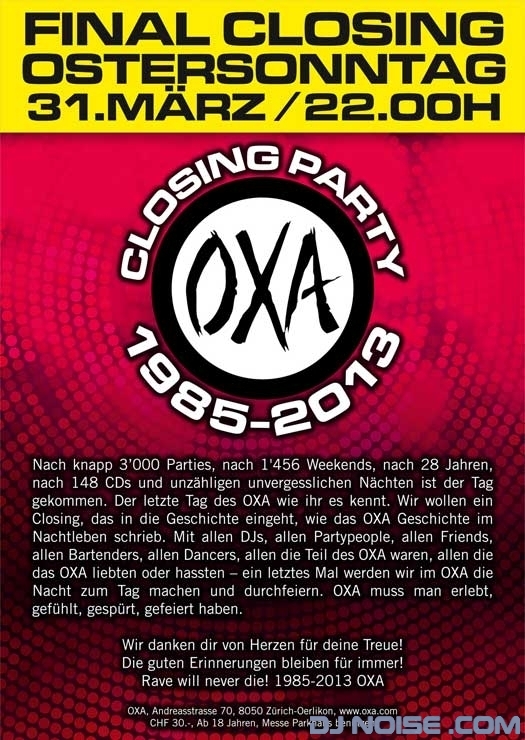 31.3.2013 Final Closing @ OXA 10 February 2013 Blog 31.03.2013 The Last Remember - OXA Zürich Playtime: 02:00 - 03:00 http://www.oxa.com Facebook Party Link Prev Next